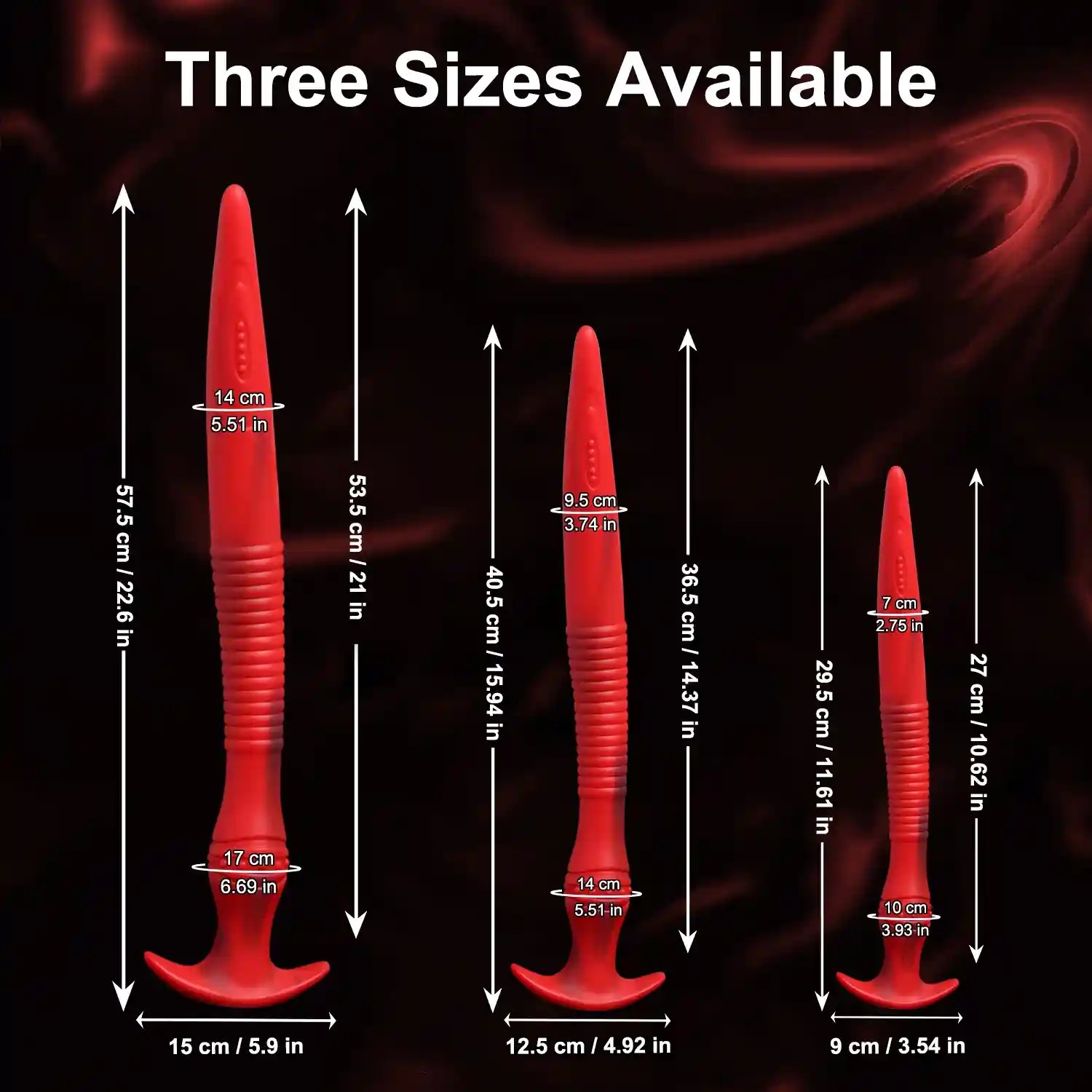 - Small: Insertion Length: 3.93″ (10 cm), Diameter: 2.75″ (7 cm), Circumference: 11.61″ (29.5 cm), Total Length: 10.62″ (27 cm), Base Width: 3.54″ (9 cm)