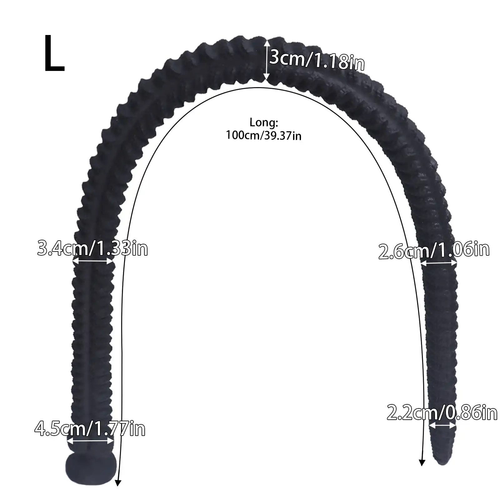 - Large: Diameter: 1.18″ (3cm), Insertable Length: 39.37″ (100cm), Base: 1.77″ (4.5cm)