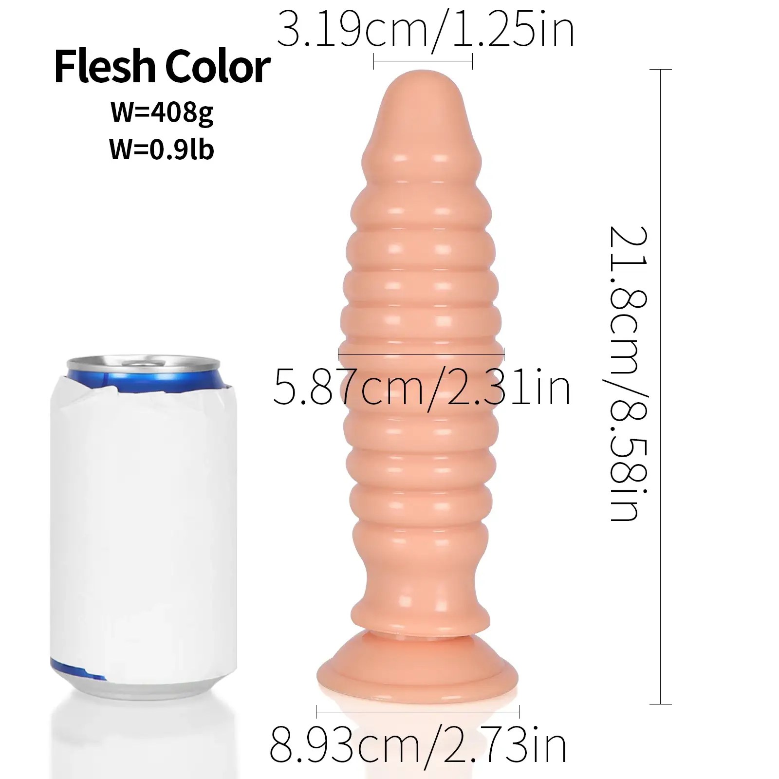 - Size: Total Length: 8.58″ (21.8cm), Insertable Length: 2.31″ (5.87cm), Max Diameter: 2.73″ (8.93cm), Base Diameter: 1.25″ (3.19cm)