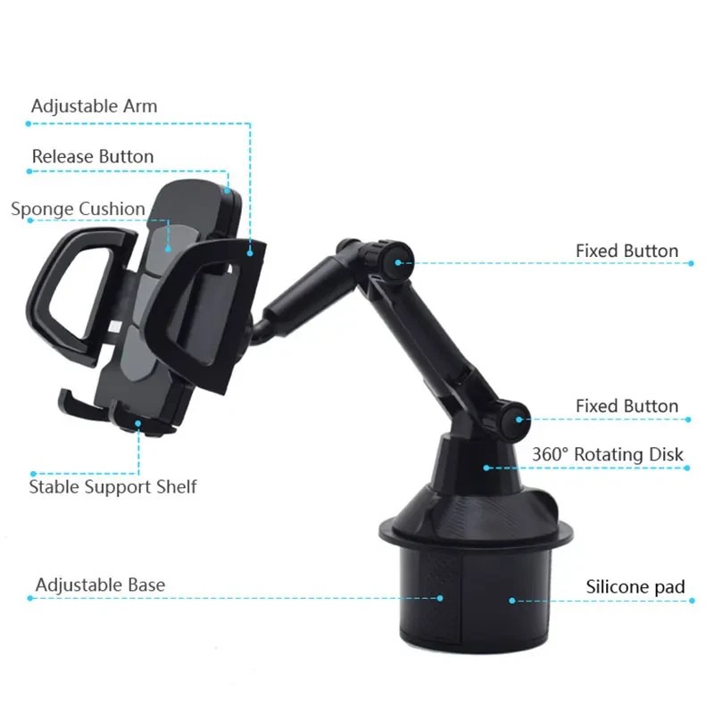 - Adjustable Grip: Expandable base that fits snugly into most car cup holders (adjustable diameter: 2.5in – 3.9in), providing a rock-solid foundation.